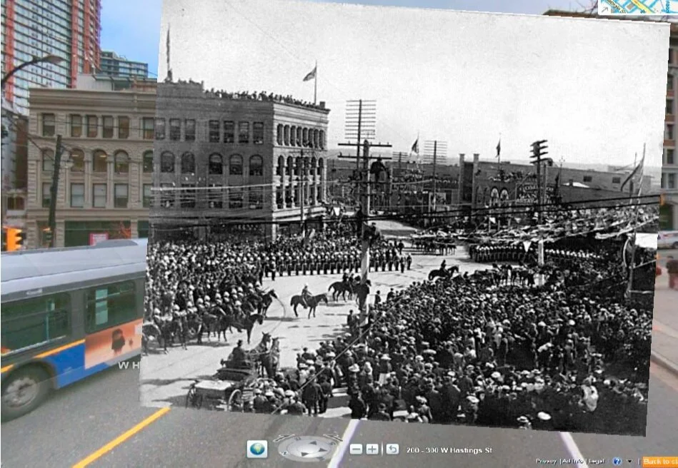 Midway through the project, I reached out to city archives in Seattle and Vancouver and secured access to century-old photographs. These weren’t geotagged, so I manually matched their locations by eye—spending late nights virtually “walking” the streets to find their modern counterparts.